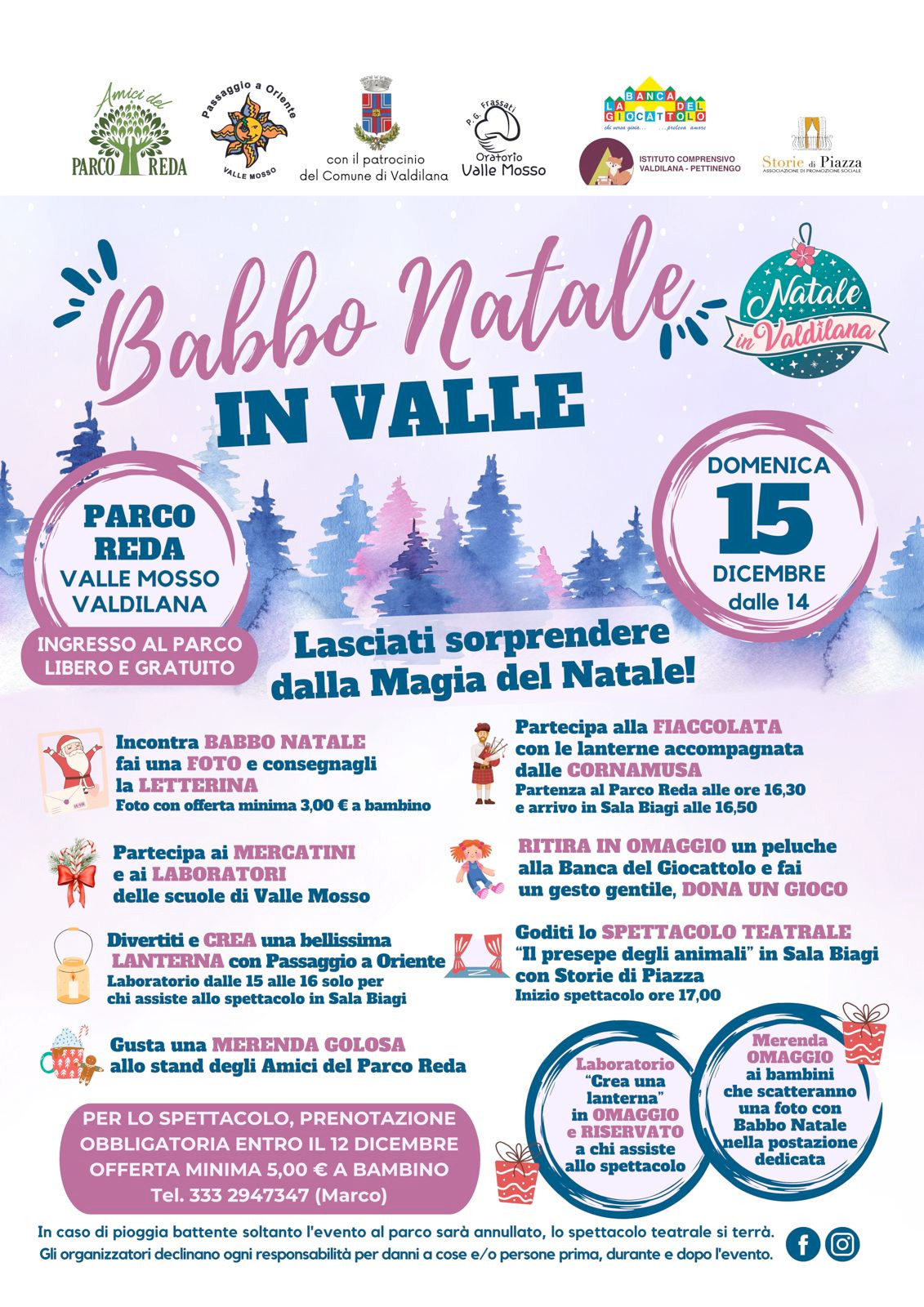 Il 15 dicembre, all’interno dell’evento “Babbo Natale in Valle” al Parco Reda a Valle Mosso- Valdilana, prenderà corpo alle h. 17 lo spettacolo Il presepe degli animali, come evento conclusivo di un ricco pomeriggio: l’incontro con Babbo Natale, i mercatini, i laboratori, la merenda golosa e per finire la fiaccolata con cornamusa che accompagnerà  tutti dal Parco Reda in sala Biagi a vedere lo spettacolo!